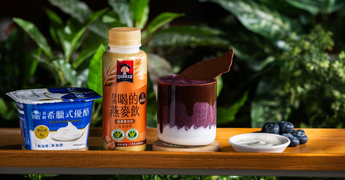 結合「桂格經典喝的燕麥飲」與「福樂頂級無加糖希臘式優酪」,加入藍莓與可可,打造出酸甜平衡的風味。結合優質蛋白質,讓代謝補給更順口。