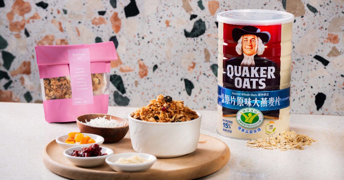 以「桂格原片原味大燕麥片」低溫烘烤,香氣濃郁、口感酥脆,搭配天然果乾取代精緻糖,無論灑在優格或牛奶上,甚至當作下午茶小食,都能以更輕盈的方式滿足口腹之慾。
