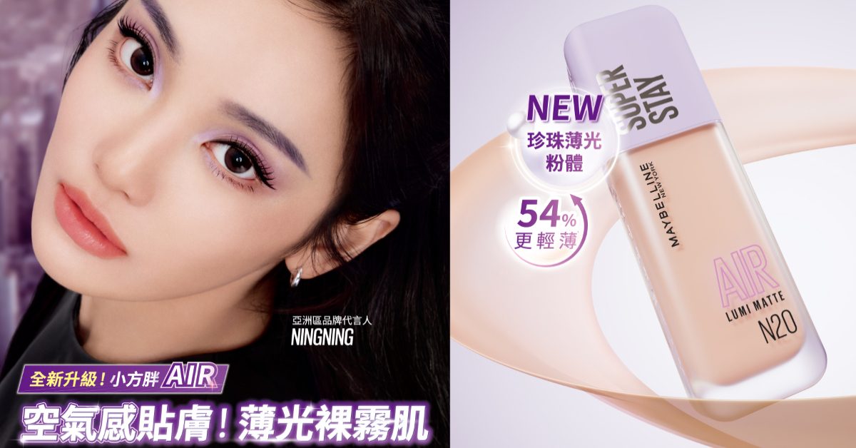 媚比琳全新升級「小方胖AIR」水粉底,以輕盈珍珠薄光粉體與空氣感鎖妝科技,實現薄透裸霧妝效,持久30小時不暗沉,打造專櫃級原生美肌,滿足亞洲膚色多元需求。