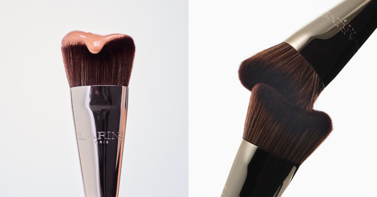 為將「黃金雙萃精華粉底液」的頂級抗老養護與彩妝表現推向極致,克蘭詩科研團隊與全球彩妝創意總監 Marie Duhart 共同創作出以刮痧小臉為靈感,上妝同時按摩的拉提粉底刷。