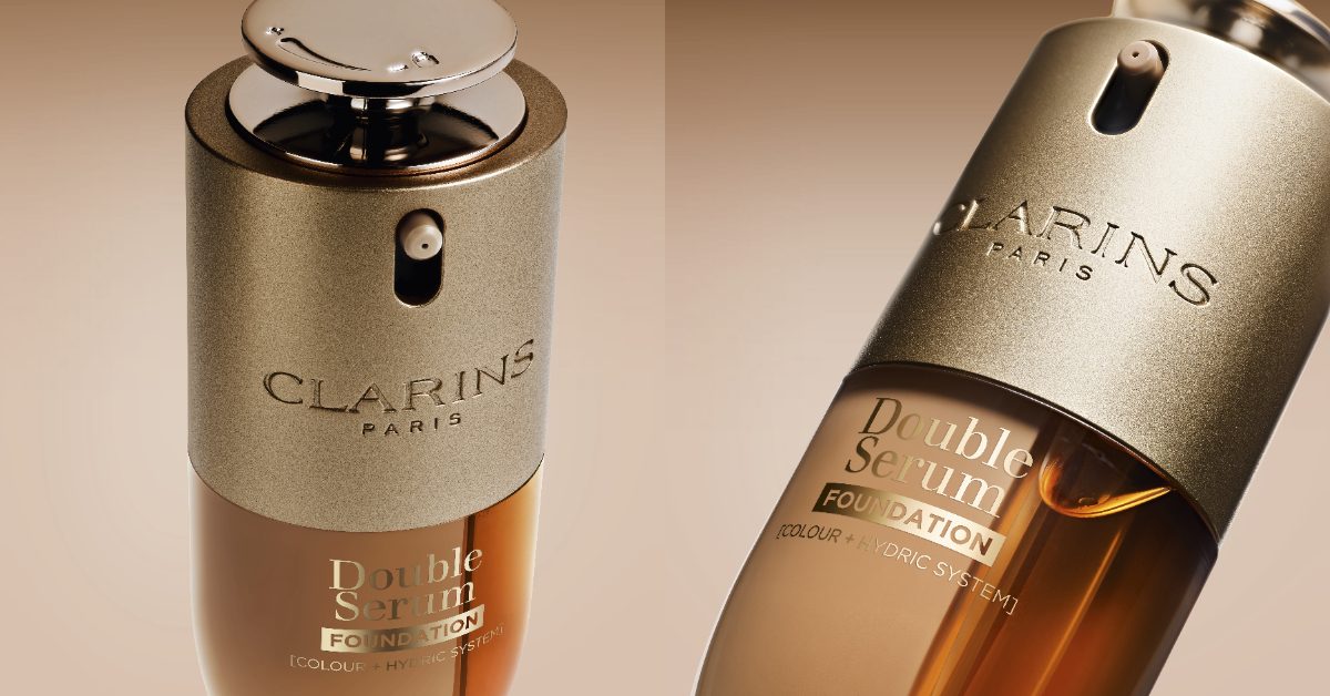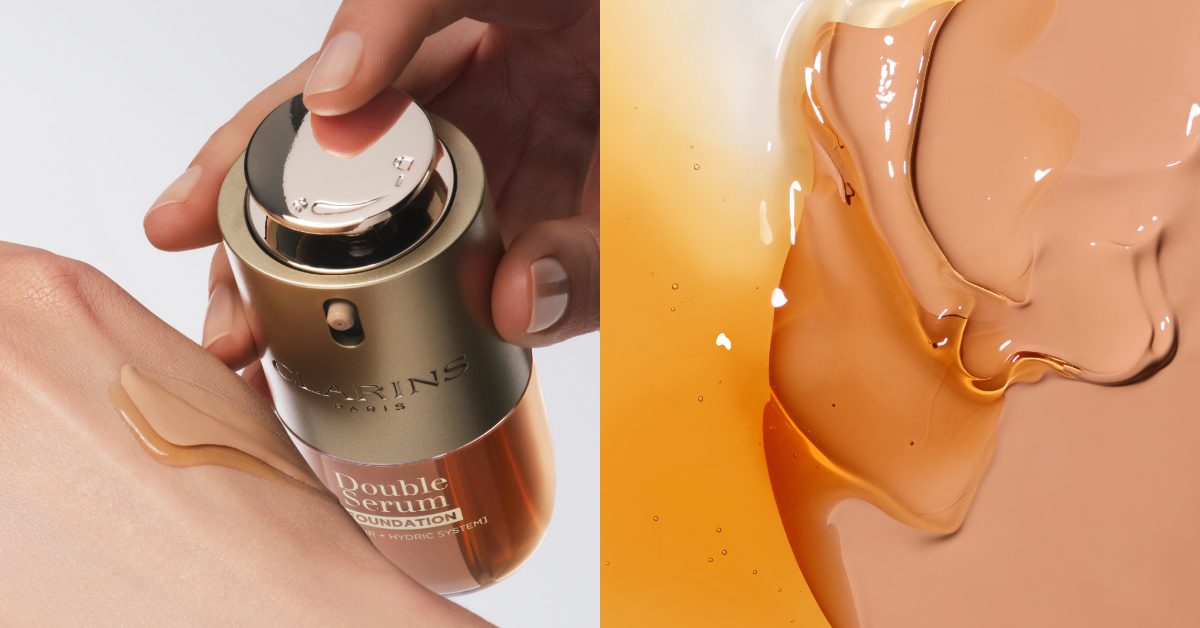 底妝邁入抗老新世代!克蘭詩將超過40年的黃金雙萃精華科技首次注入粉底液,雙管設計保持高活性精華,結合光感科技與天然植萃,打造即刻亮澤、長效養膚的水光底妝。