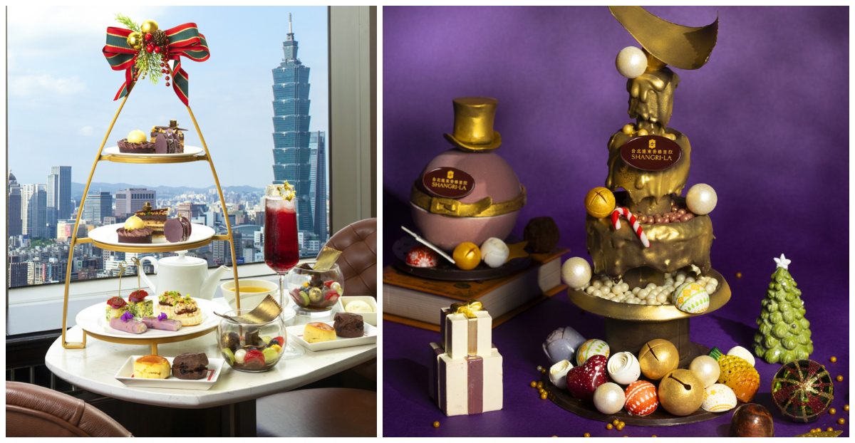 去年的話題場景「Dream Bar」今年也回歸。位在6樓李白居酒廊,這個期間限定夢幻酒吧一樣用超過8,000顆紅金色聖誕球與近百條燈串,把整個扇形天花板鋪成一條長達約3公尺的星光銀河,鏡面折射之下,吧台就像浸入星河裡。而被稱為「台北最美空中酒廊」的馬可波羅酒廊,這次也沒缺席。每週六、日推出《巧克力冒險工廠》主題下午茶。金獎券被做成聯名巧克力布丁杯,還有咖啡巧克力歐貝拉、覆盆莓巧克力萊明頓等甜點,鹹點則以鵝肝雞肉慕斯、爐烤鮭魚白花椰慕斯搭配金箔與檸檬凍,最後再用香草&巧克力司康收尾。