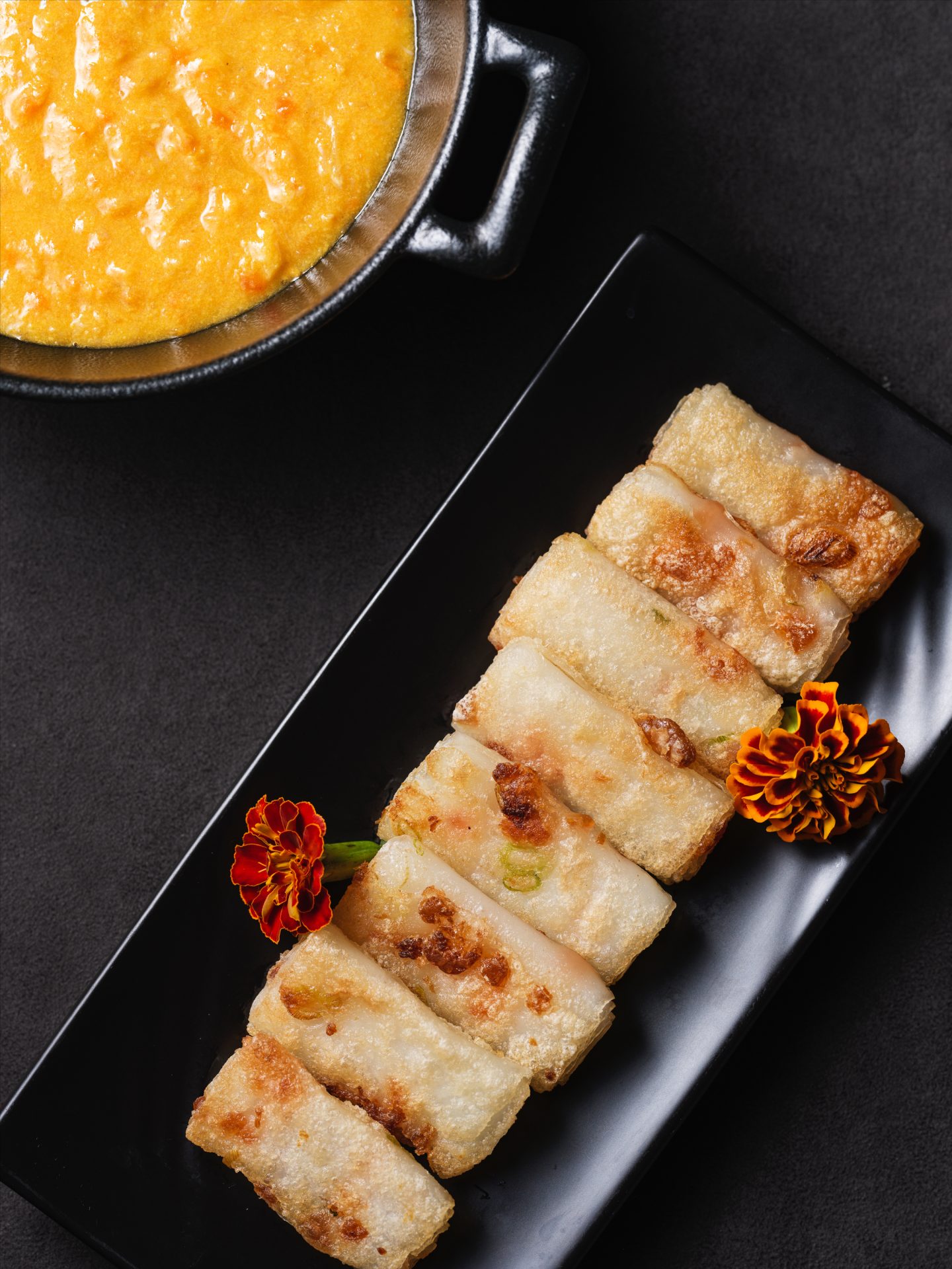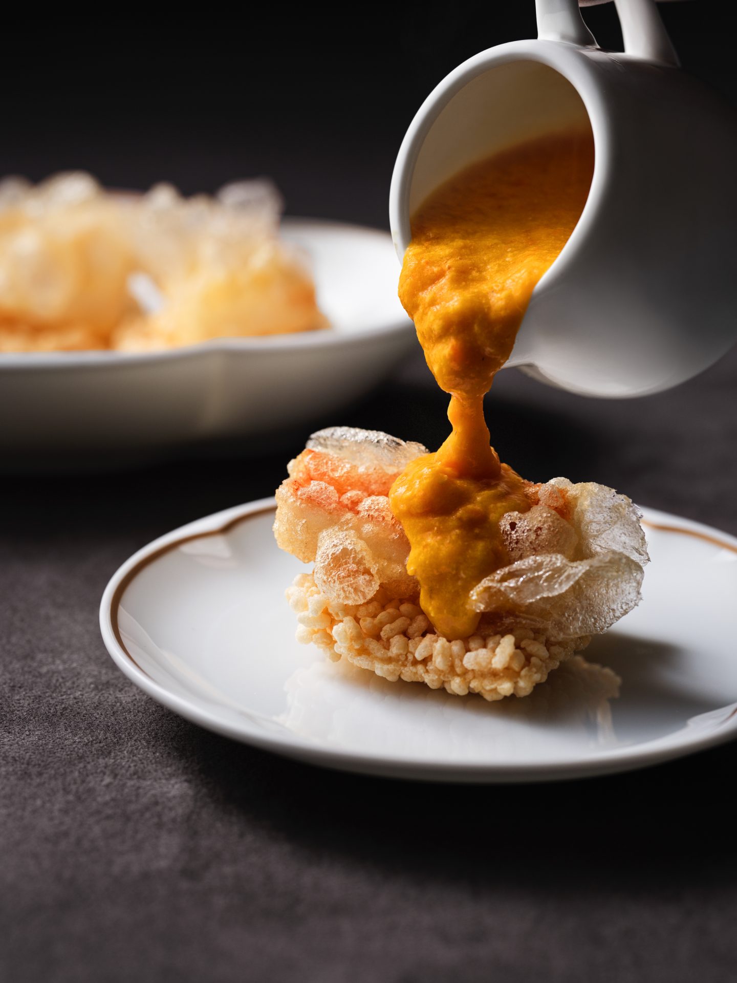 此次秋蟹菜單亦推出數道以蟹粉為主軸的料理,包括蟹粉玻璃蝦球皇、蟹粉紅燒排翅、蟹粉海鮮燕窩羹、蟹粉百花煎釀蟹鉗、蟹粉蝦腰白雪玉、蟹粉鍋巴星斑球與蟹粉煎蝦米腸粉,皆以細緻呈現蟹粉之鮮,或濃或嫩,或香或鮮,展現秋蟹的多重面貌。