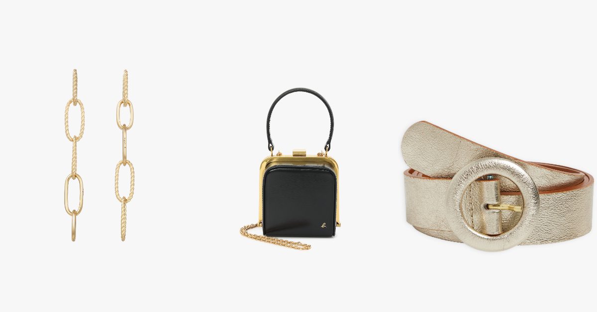 呼應服裝風格的首飾與配件,為整體造型畫龍點睛。流線輪廓的圓形墜飾項鍊,可營造視覺層次感,鍍金黃銅與表面紋理細節,展現法國工藝的細膩質感。扭結船錨環圈造型耳環,採用鍍14K金拋光處理,精緻的立體結構設計為造型增添優雅氣息。外型小巧的b. Logo單肩包及City皮革兩用肩背包,表面皆點綴以立體金屬標誌;復古牛皮鍊帶包則以獨特的口金式設計,成為派對中隨身配飾的亮點。