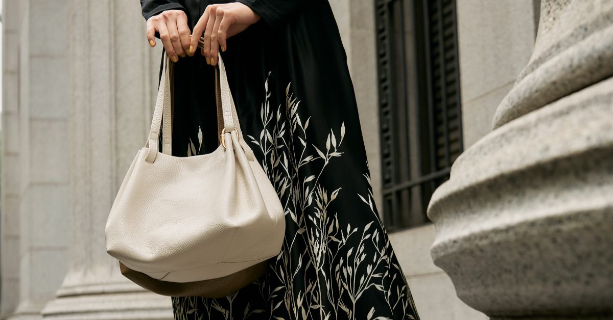 本季全新推出的囊袋式皮革肩背包,以質感柔軟的收縮壓花皮革打造出無縫結構,包身刻意減少金屬元素,線條純粹流暢,呈現極簡而優雅的視覺感受。外層與內裡選用雙面皮革製成,不僅強化整體一致性,更賦予輕盈自在的質感。開口採用獨特的覆蓋式設計,僅於提把處畫龍點睛點綴上金色扣環,展現柔和不失個性的都會氣息。