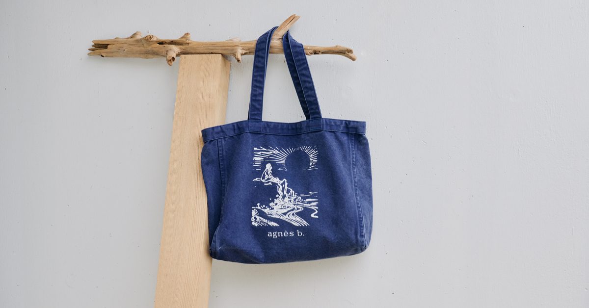 Agnès女士的手繪畫作《La jeune fille qui respecte la mer(望海的女孩)》,最初出現在1980年agnès b. 紐約第一家專賣店開設時的特製賀卡,自此成為品牌標誌性符碼,時常出現在服飾與配件設計中,傳遞獨特的藝術氛圍。本季包含擁有迷人自然紋理的帆布托特包、Trip系列多功能尼龍包,皆運用《望海的女孩》作為印花圖案與緹花刺繡徽標,彰顯品牌經典與創意的交織。其中,Trip尼龍包內裡配置網眼收納袋和D型扣環,適合收納各式小物;可拆式肩帶提供多樣背法,能適應戶外活動與旅行所需。