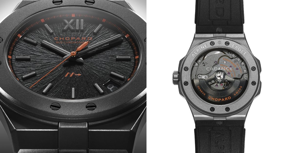 自2019年問世以來,Alpine Eagle系列不斷精益求精,融入尖端技術。最新推出的第三代高振頻腕錶,更以系列前所未有的輕盈錶身,將製錶工藝推向另一巔峰。為實現此非凡傑作,這款限量的 Alpine Eagle 41 SL Cadence 8HF腕錶,其41毫米錶殼、錶冠及錶圈均以陶瓷鈦金屬製成,錶帶則選配橡膠材質。而榮獲瑞士官方天文台認證的高振頻機芯Chopard 01.14-C也比上一代更為輕巧,皆因其主機板及錶橋同樣採用陶瓷鈦金屬。除了尖端技術,腕錶的美學設計亦同樣精雕細琢:陶瓷鈦金屬經過微珠噴砂處理,呈現出鮮明的運動氣息,而鈦金屬材質的純黑色錶盤則與橙色細節形成奪目對比。Alpine Eagle 41 SL Cadence 8HF腕錶,完美融合精準度、時尚風格與運動氣息。