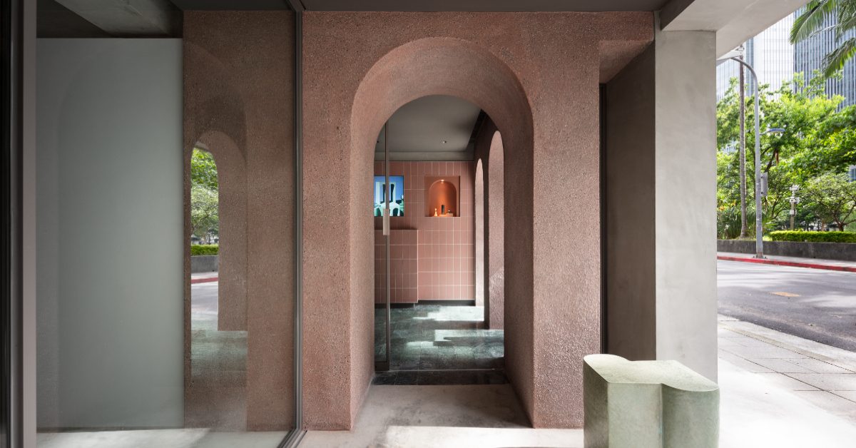 此外,拱門入口作為場域視覺起點,象徵品牌欲打開一扇通往內在桃花源的「任意門」,傳遞身心穿越、重啟感官的設計意圖。從地面肌理到牆面語彙,再到動線配置,皆秉持「以空間敘事,為保養留白」的設計思維,讓造訪者得以在日常節奏中,稍作停駐與自我照護。