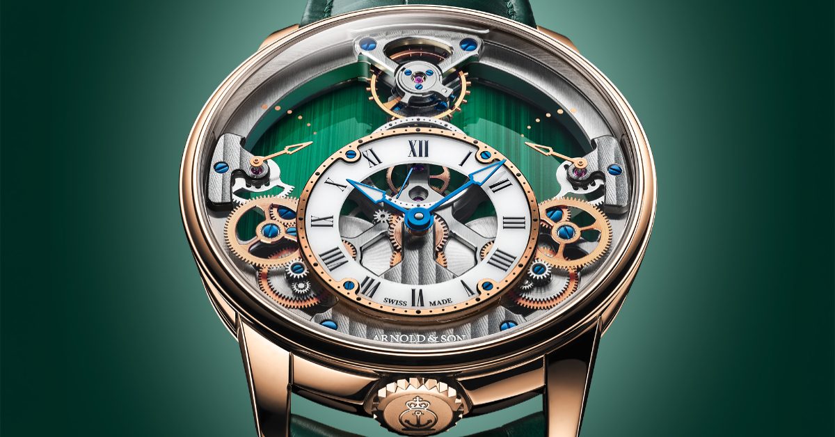 Arnold & Son 以 Time Pyramid 系列再現英國製錶傳承,孔雀石錶盤襯托金字塔式機芯,鉑金與紅金限量款展現精密對稱與層次美感,兼具工藝與優雅的現代時計典範。
