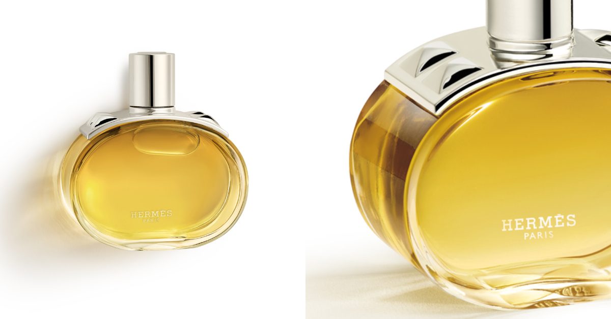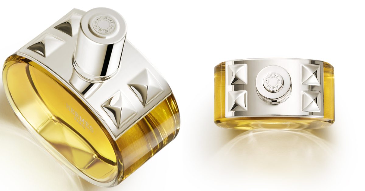 Philippe Mouquet 設計的瓶身重新演繹這種對立和諧。它採用淺琥珀色漸層漆飾色調,底部變得完全透明,愛馬仕標誌躍然而現。雖然靈感源自經典Collier de chien 手環的金屬飾片和瓶蓋設計依舊沿用,但這款馥郁淡香精的外包裝盒則以燙印銀標記點綴,並飾以雍容華貴的紅色H字樣。這款標誌性色調表達了獨特嗅覺構圖的濃烈與熾熱,彰顯愛馬仕chypre調香氛出人意表的風情。