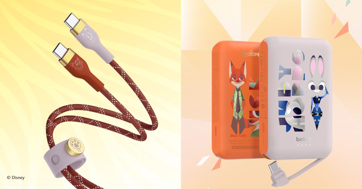 這一波禮物名單中,最先吸睛的,當然是搭上電影熱度的《動物方城市》聯名系列。Belkin 把尼克與朱蒂搬到日常 3C 配件上,讓你出門在外隨手拿起的行動電源、充電線、手機掛繩,甚至是兒童耳機,都多了一點療癒感。聯名行動電源採雙面角色造型設計,顏值在線,規格也不馬虎,內建 10,000mAh 大容量,最快可在 26 分鐘內把 iPhone 15 Pro 從 0% 充到 50%,同時支援兩台裝置一起充電,還具備直通供電技術,等於行動電源自己在補電時也不會中斷幫手機續航。聯名充電線則在兩端分別加上尼克與朱蒂圖樣,矽膠線體包覆防磨損雙編織尼龍外層,用起來手感柔軟但耐用度更上一層樓,適用於多種裝置。