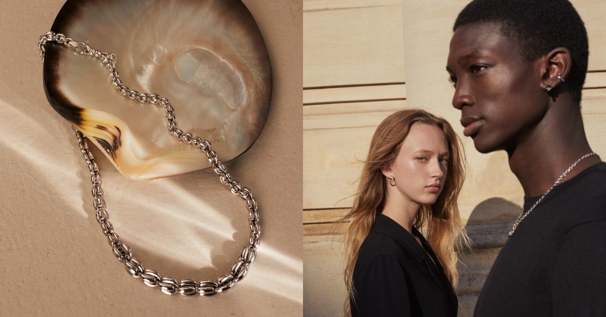 agnès b. 標誌性箭頭圖案,來自巴黎街道常見的箭頭塗鴉,象徵追尋自我的品牌理念,本季首度運用於首飾系列。簡約的中性輪廓,能輕易營造街頭風格。白金、黃金、黑色漆面三種色選相互搭襯,在視覺上營造變化性;部分款式更密鑲上施華洛世奇水晶,賦予華麗質感。