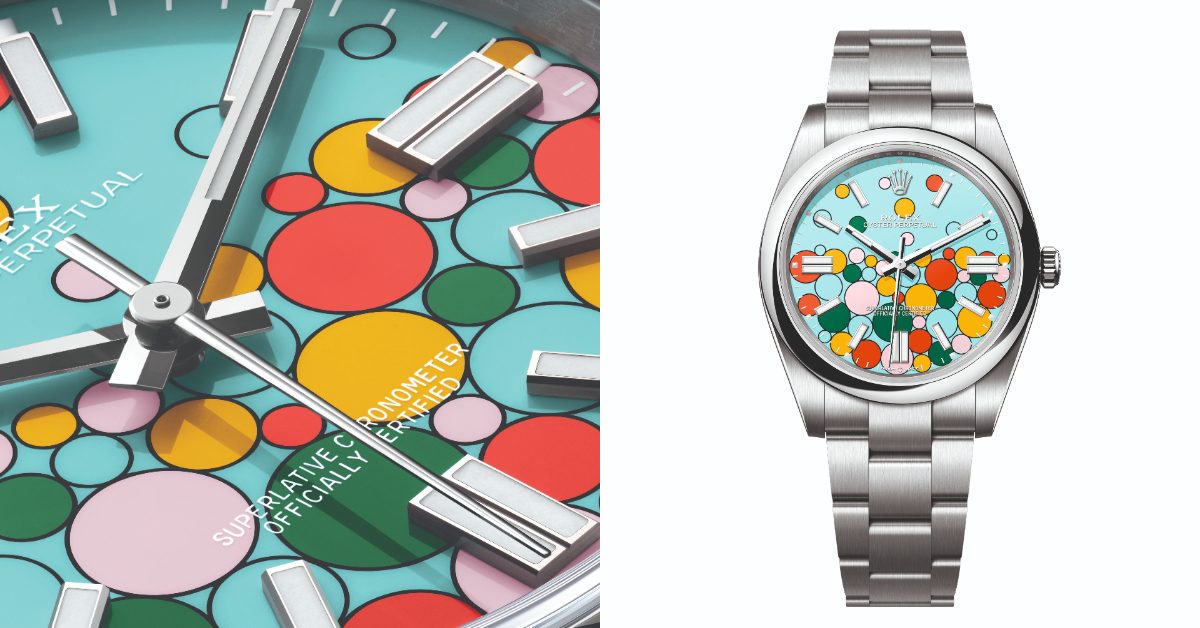 自從 2020 年推出彩色漆面款後,Oyster Perpetual 的人氣節節高昇,而 2023 年的彩色氣泡設計更讓該系列全面起飛。 以「Celebration 慶典」作為靈感,在面盤上加入大小不一的氣泡,顏色由糖果粉紅色、綠松石藍色、黃色、珊瑚紅色及綠色組成。不僅繽紛亮麗,對資深勞迷而言更隱含向 2020 年問世的各色 Oyster Perpetual 致敬的意味。以勞力士保守傳統的作風,氣泡面盤如此破格的配色十分難得,加上產量不多便已在 2025 年停產,如今身價水漲船高,已是勞力士藏家眼中不可或缺的一塊拼圖。