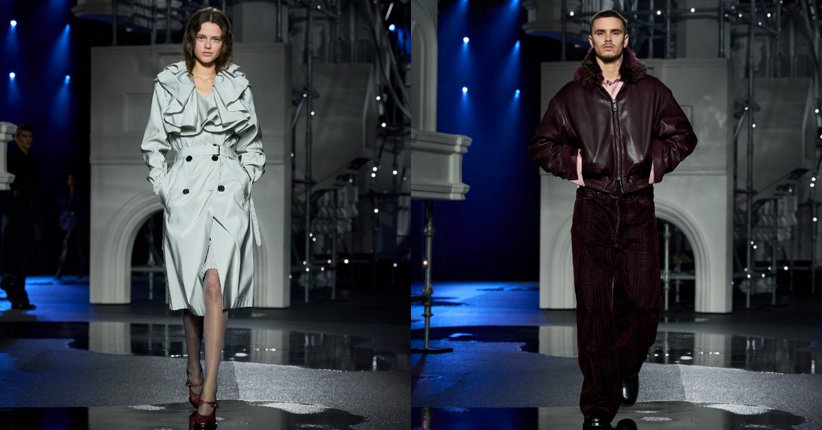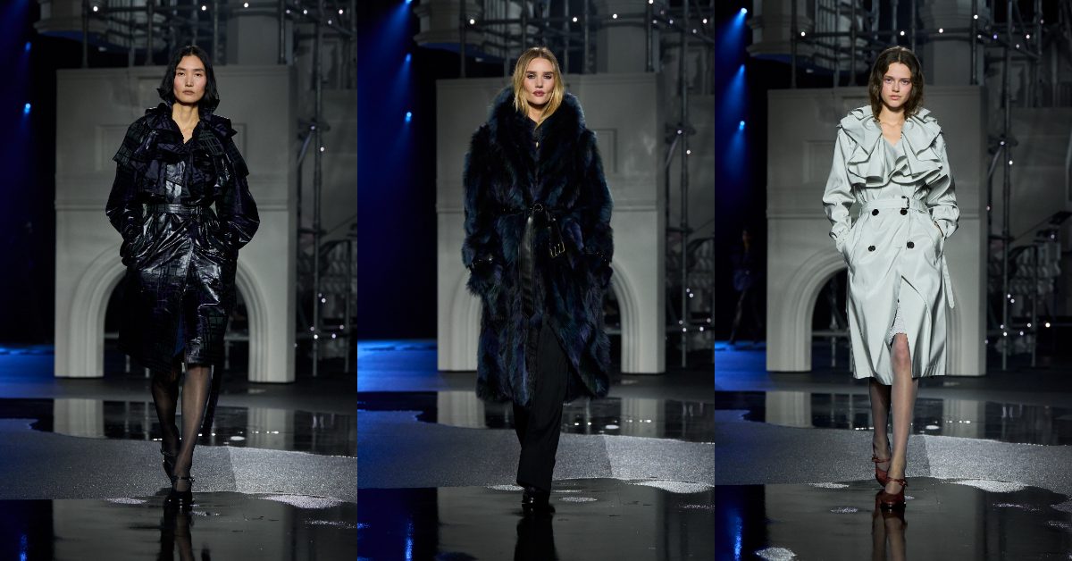 街燈映照在濕亮的黑色柏油路上。Burberry的2026冬季系列將品牌帶回城市,首席創意總監Daniel Lee將這場秀形容為一種「非常倫敦的方式」登場。