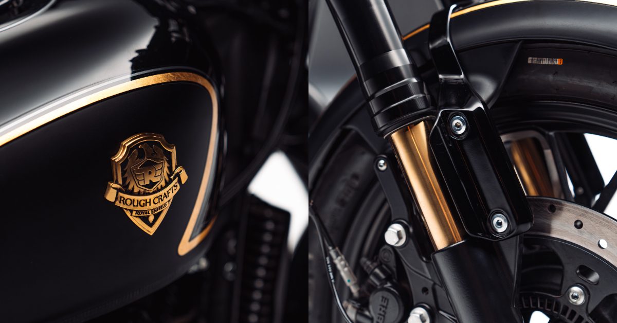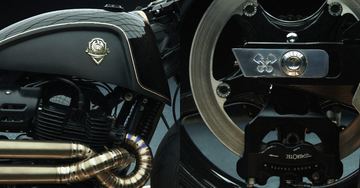 Shotgun 650 × Rough Crafts Drop Edition 則成功將這些視覺語彙抽離極端手工細節後,以量產語法重新轉譯。從黑金調性到倒叉、徽章、造型比例、車身線條,每一處都具備量產可靠度,同時保留台灣改裝文化的細節美學,讓全球收藏者能真正騎上 Rough Crafts 的設計作品,而不僅是遠觀欣賞。