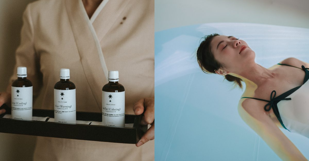 旅程的開始,是一杯依月相特製的中草藥茶,溫潤的香氣先行舒緩了緊繃的神經。隨後,芳療師會引導你透過三款複方精油的聞香,並選擇一顆與當下能量共鳴的礦石:或許是秘魯黃鐵礦的穩定,喜馬拉雅白水晶的純淨,或是印度紅玉髓的活力。最終,那獨特的「飄浮冥想療法」更是將體驗推向極致;在富含瀉鹽的無重力鹽水中,意識與身體徹底分離,進入一種前所未有的深層靜默,讓所有外界雜訊全然消融。
