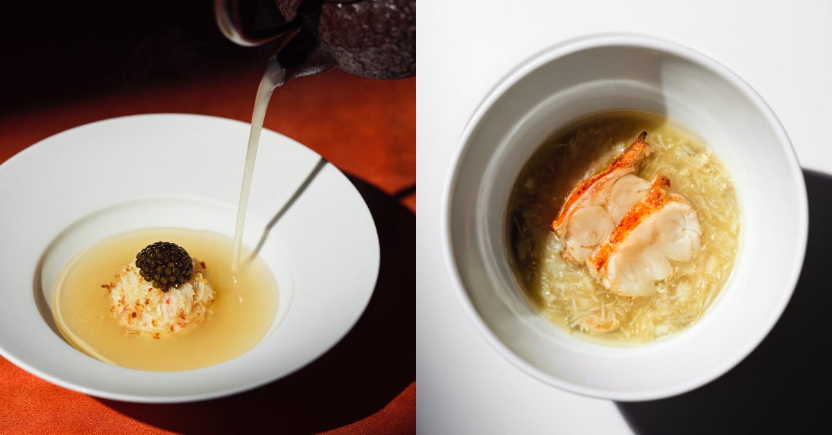 年度限定「蟹宴」,既是秋蟹的多重演繹,也是一場技藝與文化的交錯對話。從經典粵式芋蓉釀蟹粉、江浙風味的蟹黃蒸蛋,到川味辛香的麻婆蟹飯、潮汕撈蟹與避風塘蟹粥,每一道料理皆承襲地域菜系的飲食文化,並由主廚與團隊重新編排結構,轉化為 Circum- 對於華人料理的現代表達。從融合醉蟹意象與最中餅的前菜揭幕,到以粵式蟹珧燕窩羹結合日式真丈技法所演繹的湯物等,不僅映照出對各地料理手法的尊敬,也體現主廚揉合傳統與創新的創作想像,將跨文化精髓化為 Circum- 餐桌上的風味共鳴。