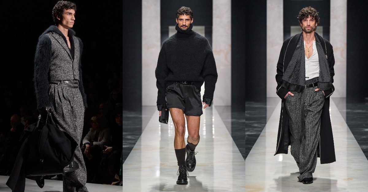 每一位男性皆被視為一個自足的宇宙,承載著熱情、記憶與內在張力。伸展台化身為一座當代的「活體肖像畫廊」,每一套造型皆如一幅心理與服裝交織而成的自畫像。 光影以文藝復興般的感性刻畫輪廓,喚起義大利明暗對比(chiaroscuro)的情感深度;象徵性的細節則揭示個人敘事的片段,轉化為風格語言。