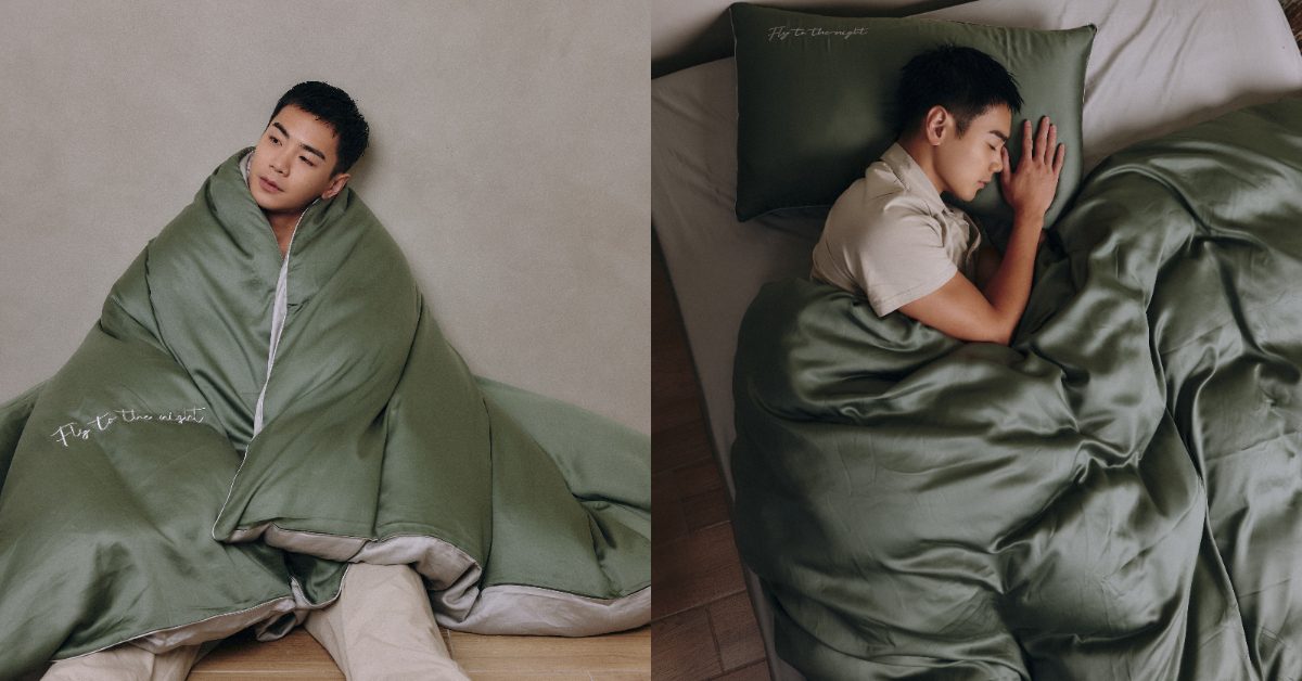 身為細節控的浩辰,不僅對材質講究,對設計中的每一個細節更是親力親為,從標語字體、抱枕刺繡到包裝設計,皆經過多次打樣與實際試用。他分享,每個人都有專屬的睡前儀式,而他本身因怕熱、怕黏,有些「睡眠怪癖」:有時會選擇裸睡,這時天絲材質的透氣涼感讓他感受到前所未有的舒適;或習慣雙腿夾著枕頭,釋放長時間積壓的肌肉壓力,享受真正的放鬆。