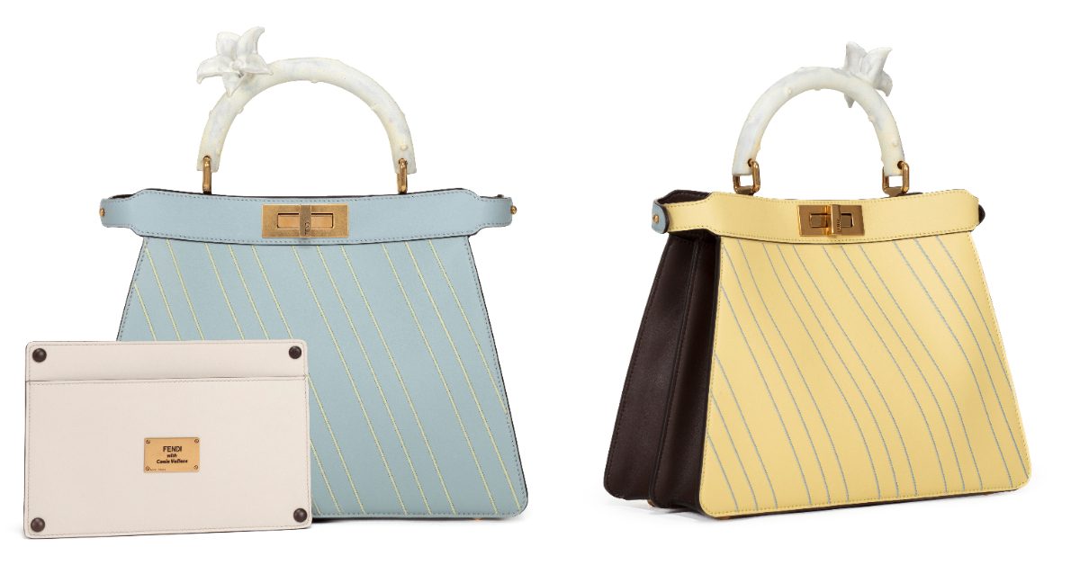 延續七年傳統,FENDI 邀請 Vallese 重新詮釋 2008 年 Silvia Venturini Fendi 設計的 Peekaboo 包款,限量版合作款於 Design Miami/ 及邁阿密設計區 FENDI 精品店推出。呼應系列材質觸感與雪酪色調的顏色,Vallese 採用淡黃與藍色斜紋小牛皮將 Peekaboo 重新設計為雙面設計,搭配手工雕塑陶瓷細節,限量五件,僅於邁阿密設計區 FENDI 精品店販售。