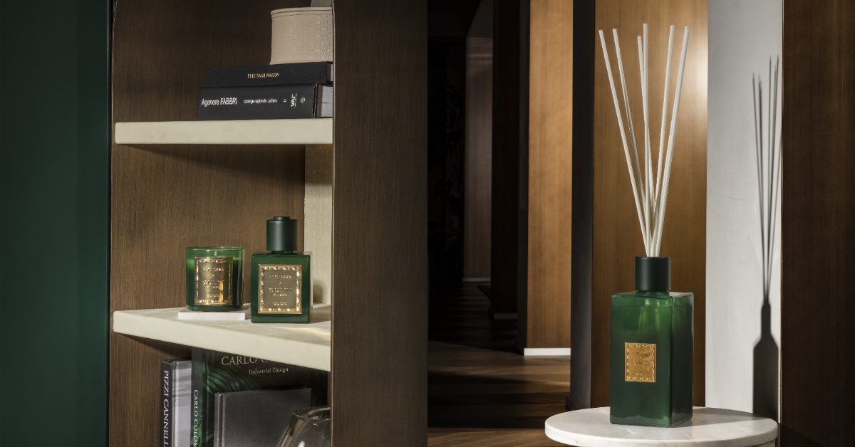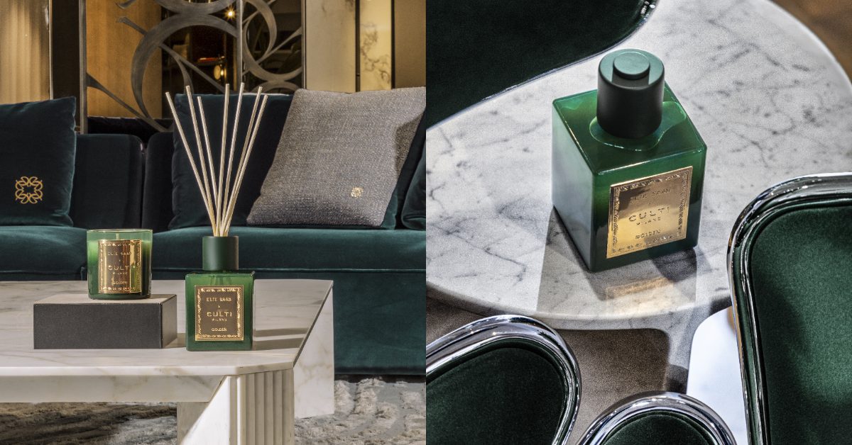 CULTI MILANO 長年以「空間氛圍文化(Culture of Ambience)」的先驅精神聞名,善於將嗅覺美學與材質、光影、設計語彙交融,創造出專屬於生活場域的香氛語言。而黎巴嫩高奢品牌 ELIE SAAB,則以高級訂製、紅毯禮服與婚紗享譽國際,近年品牌版圖持續延伸至尊榮府邸的空間與家具設計。今年的 ELIE SAAB Maison,風格始終秉持奢華基因,並以翡翠綠、香檳金、沙杏色為 標誌性色彩,大氣非凡。