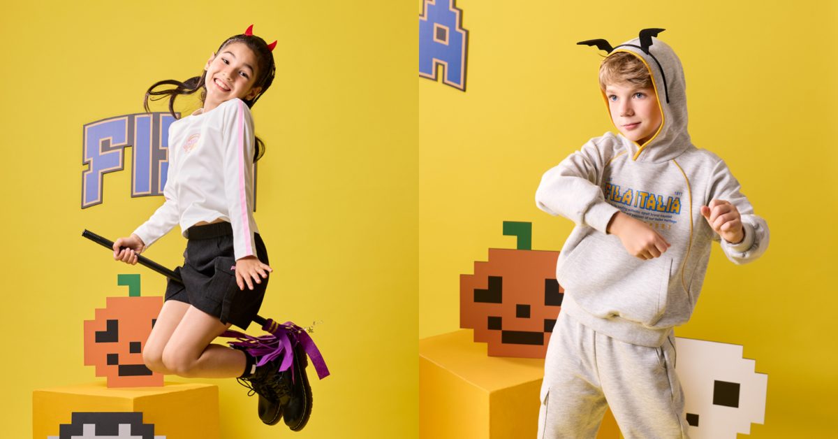 Trick or Treat!國際運動時尚品牌FILA 今年邀大小朋友一起「玩上身!」,以「PIXEL HALLOWEEN」為主題,將 80 年代經典遊戲機畫面作為靈感,把幽靈、南瓜、糖果等節慶元素化身可愛的像素方塊,搭配泡泡字設計,營造出兼具童趣與時尚感的「像素遊戲派對」風格,為今年萬聖節掀起一股萌趣穿搭旋風。