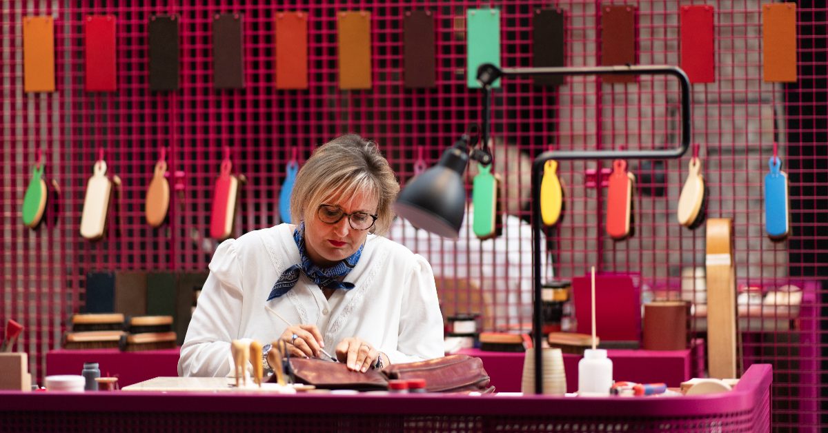 自 1837 年創立以來,愛馬仕始終秉持耐用性、品質、創新、傳承與功能美學的價值觀,這些理念在今日更與當代社會的核心議題相互呼應。展覽空間以工匠工作台為靈感,開放且溫暖的佈局呈現出四大主題,分別為工藝的保存與傳承、對材料的尊重與品質追求、對長期承諾的堅持,以及深耕地方文化的連結,這些價值構成了愛馬仕歷史與生命的基石。