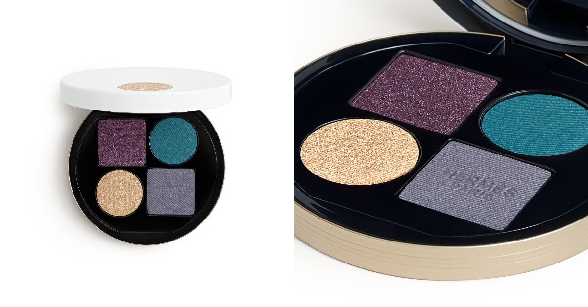 Pierre Hardy 為眼妝系列設計的圓形眼影盒呈獻四種新色調,其質地和妝感承襲愛馬仕常規系列的優雅特質。