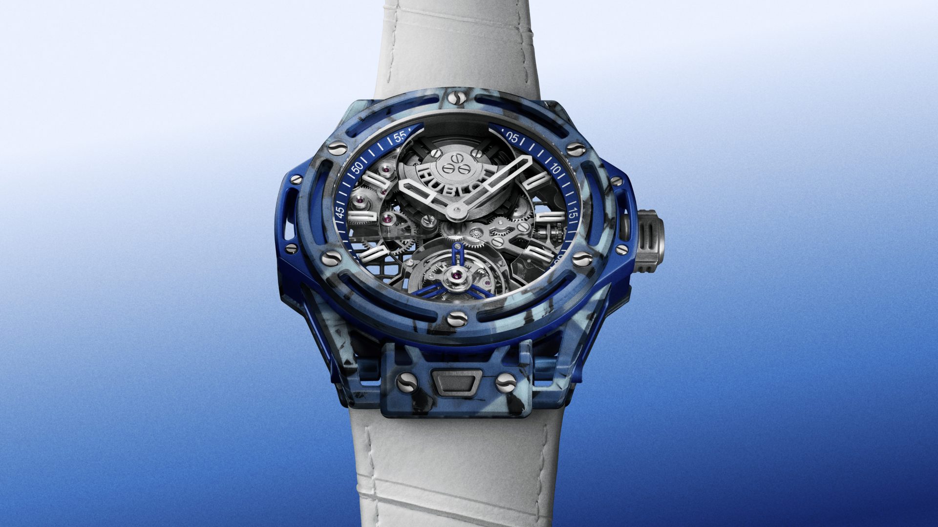 Big Bang陀飛輪喬科維奇GOAT藍色硬地款是一枚為長時間競技狀態所設計的運動時計。56公克為身體留下餘裕,也讓腕錶在高壓環境中維持結構穩定。當競技被視為一段持續狀態,製錶所回應的,是如何讓時間被精準承載,在這樣的條件下,HUBLOT的競技精神得以完整而具體體現。