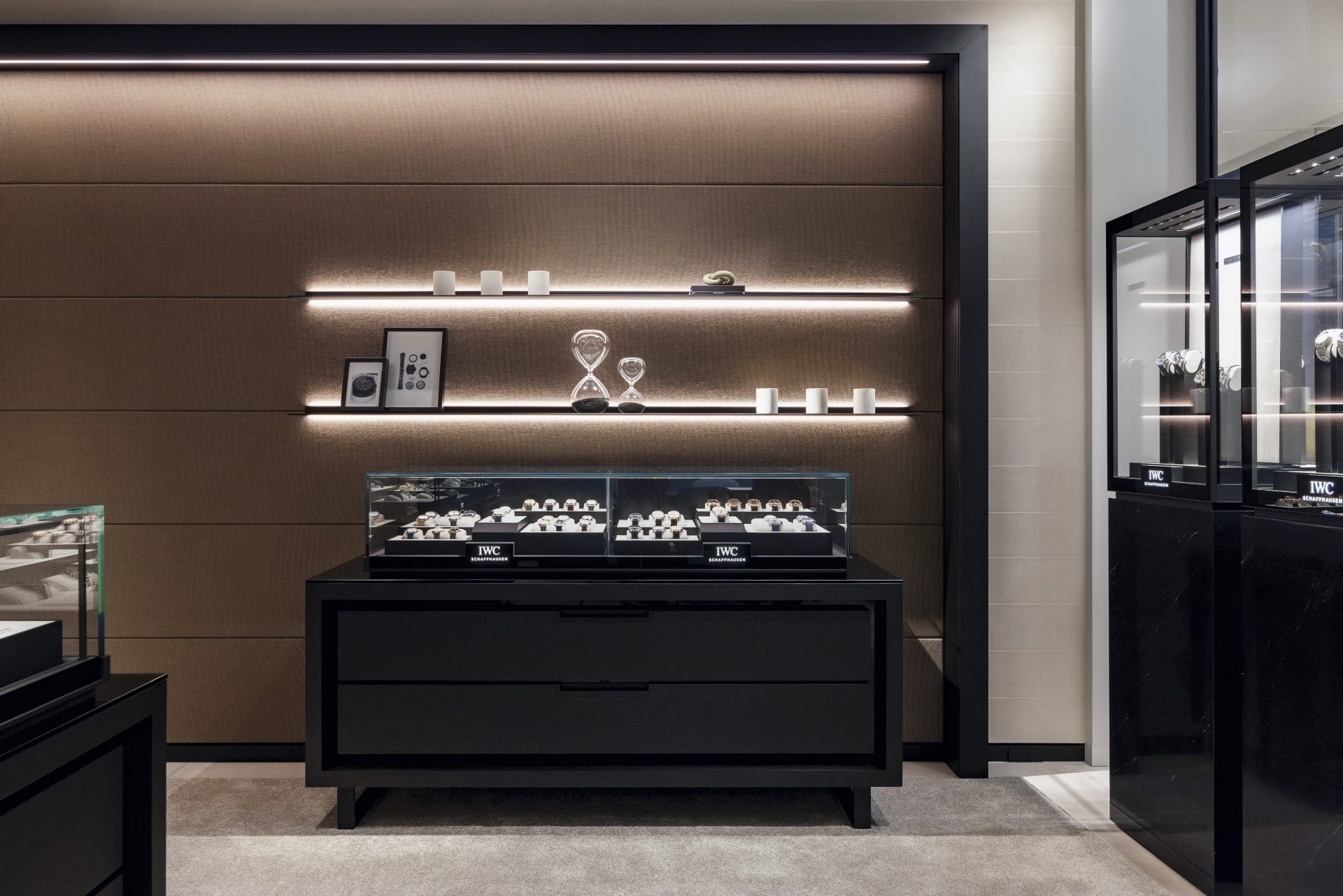 新店延續品牌一貫的黑白色調,搭配細膩紋理與技術元素,展現高級製錶與當代設計的完美平衡。走進店內,除了可以近距離欣賞葡萄牙系列、飛行員系列、柏濤菲諾系列與工程師系列等經典之作,還能在特別規劃的休息區放鬆小憩,邊品味飲品邊感受腕錶的細膩工藝。