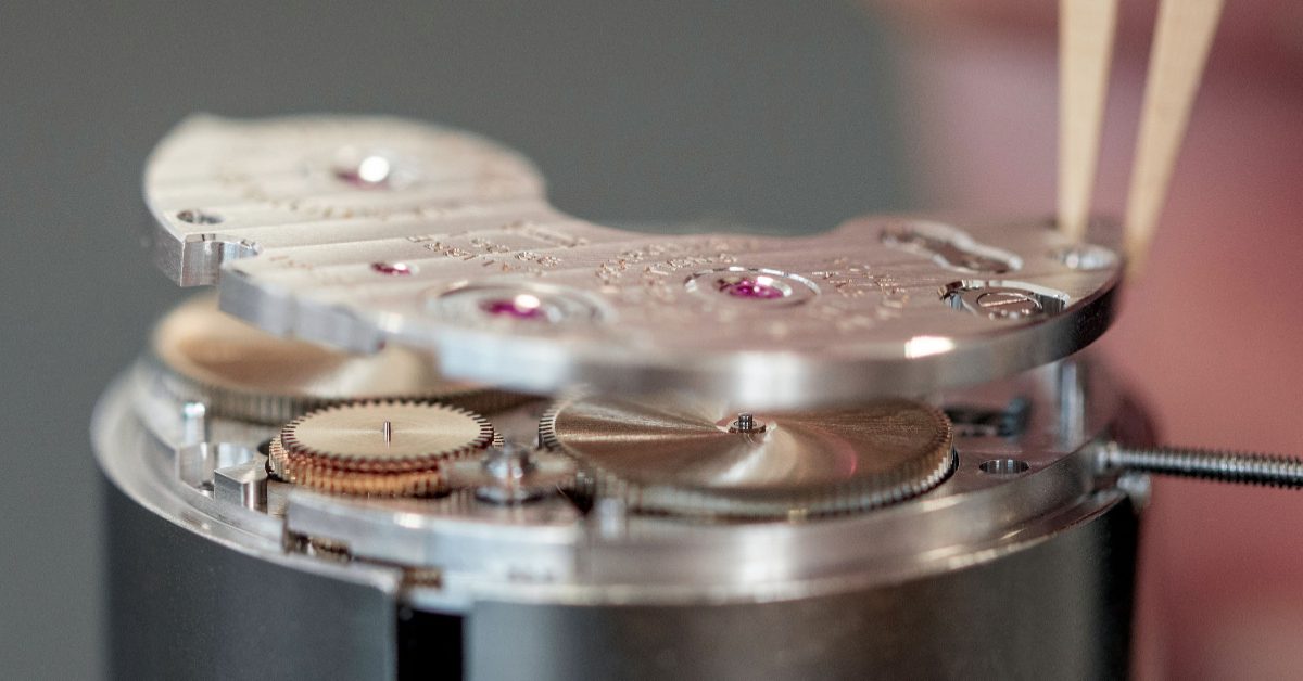 這款腕錶的手動上鏈機械機芯極為複雜,透過透明錶底蓋清晰可見,其厚度僅為4.85毫米,確保可靠精準。游絲末端配有飛利浦(Phillips)終端曲線設計,可確保調校機制的精確運作,只有真正的高級製錶廠能夠實現這一技術壯舉。此外,機芯亦配備天鵝頸式微調器,有助精確調校游絲的活動長度,藉此能夠更精細地控制擺輪的擺動頻率,從而調節腕錶的走時速率。除了實際層面的技術意義外,此裝置也為機芯添上另一重更複雜細膩的美感。