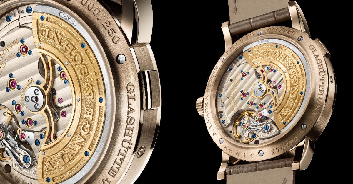 高效上鍊與恆定動力傳輸,有賴於一枚寬度可覆蓋機芯直徑的大型中置擺陀。其中央部分以 875 金製成,壓印朗格標誌,離心塊件則以鉑金 950 打造。