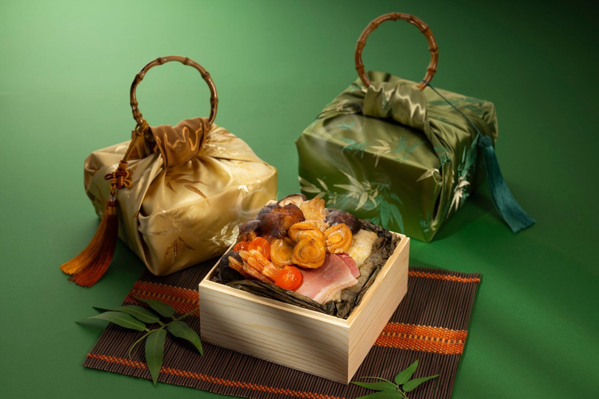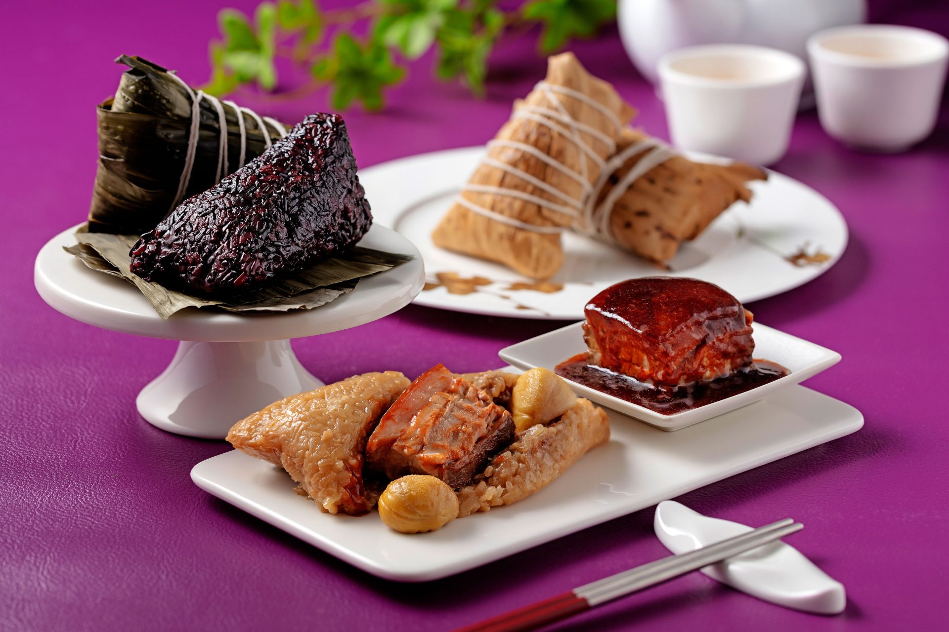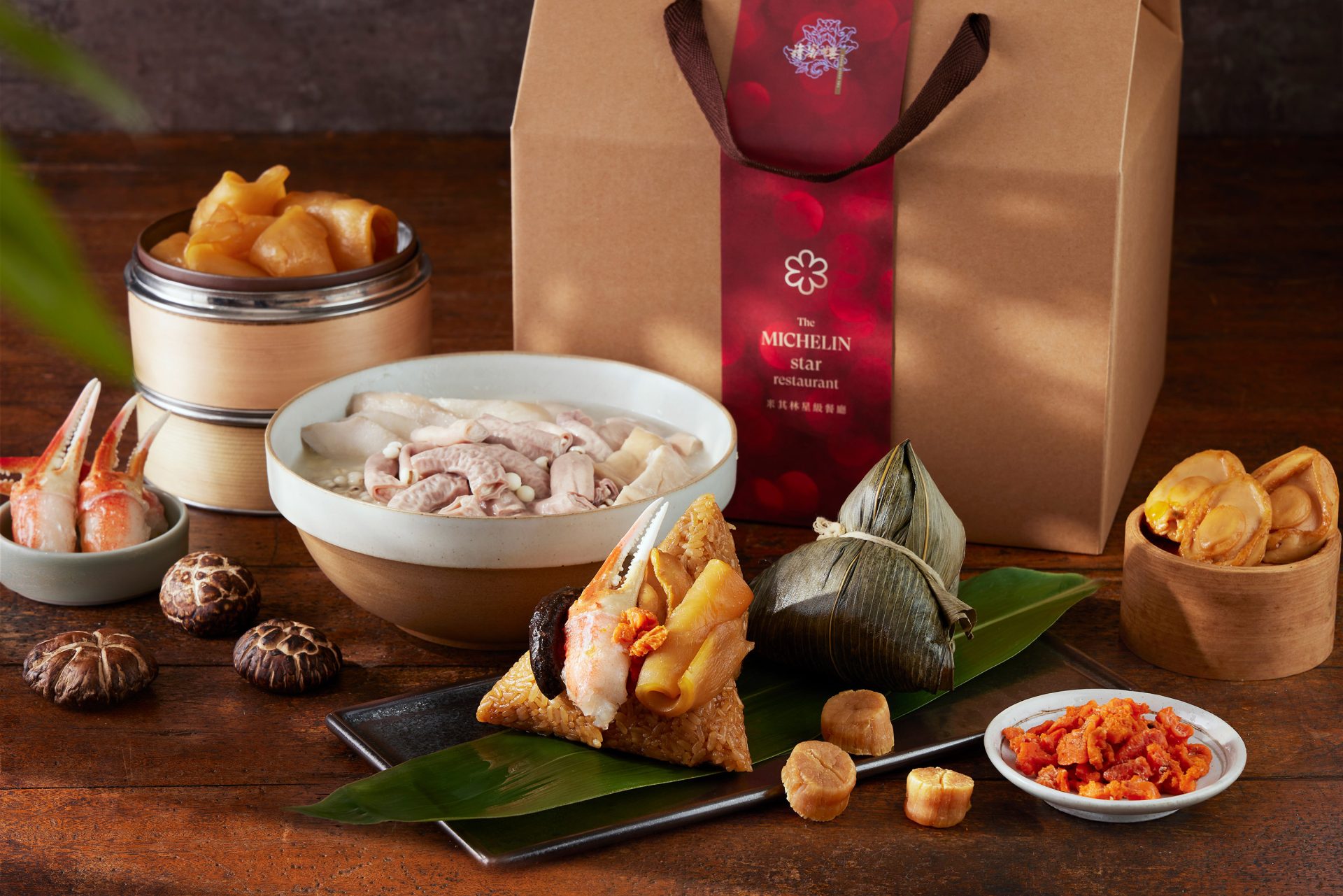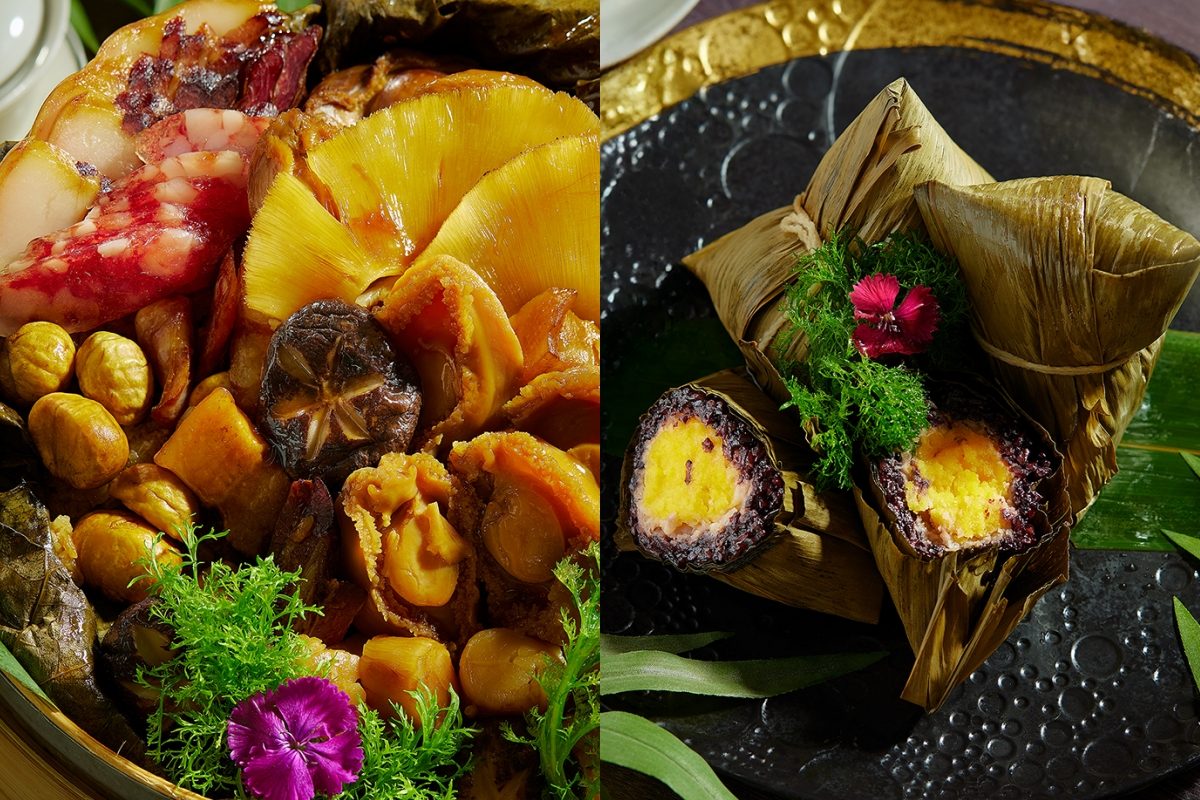 結合粵菜底蘊與現代風格的玖尹中餐廳,今年推出限量禮袋「緋映端陽粽香禮袋」,內含四款手工粽子共八顆,包含新推出的「霸王玉豚粽」、經典「玖尹鮑汁五品粽」、創新健康的「黑松露藜麥粽」,以及甜口「黑糖桂圓棗泥粽」,鹹甜兼具。新口味「霸王玉豚粽」以豬腱骨外露造型搭配蒜香米飯與中藥滷汁,視覺與味覺兼具;「五品粽」則集結八頭鮑、日本瑤柱、花菇、豬五花等山海珍味。即日起開放預購,4月25日起取貨,預購優惠價2,088元,數量有限。