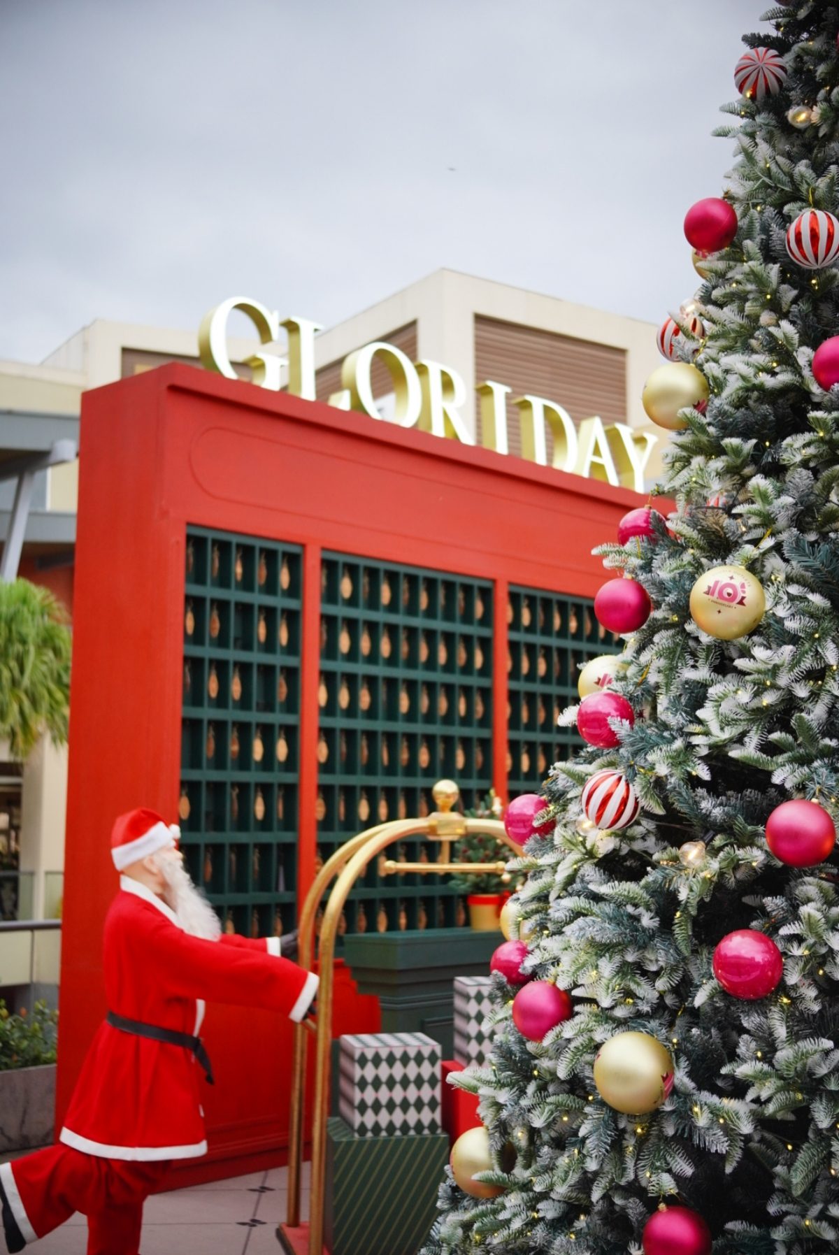 今年聖誕村打造三大主題場景,包括一期的「Gloria Xmas Hotel」,以復古飯店搭配7、80 年代設計,充滿互動拍照裝置;三期空間的「百老匯聖誕舞台」每週六都會邀請紅鼻子馬戲團演出。當然最亮眼的莫過於位於二期空間的20 米穿越聖誕樹,更是今年主題中的主題。
