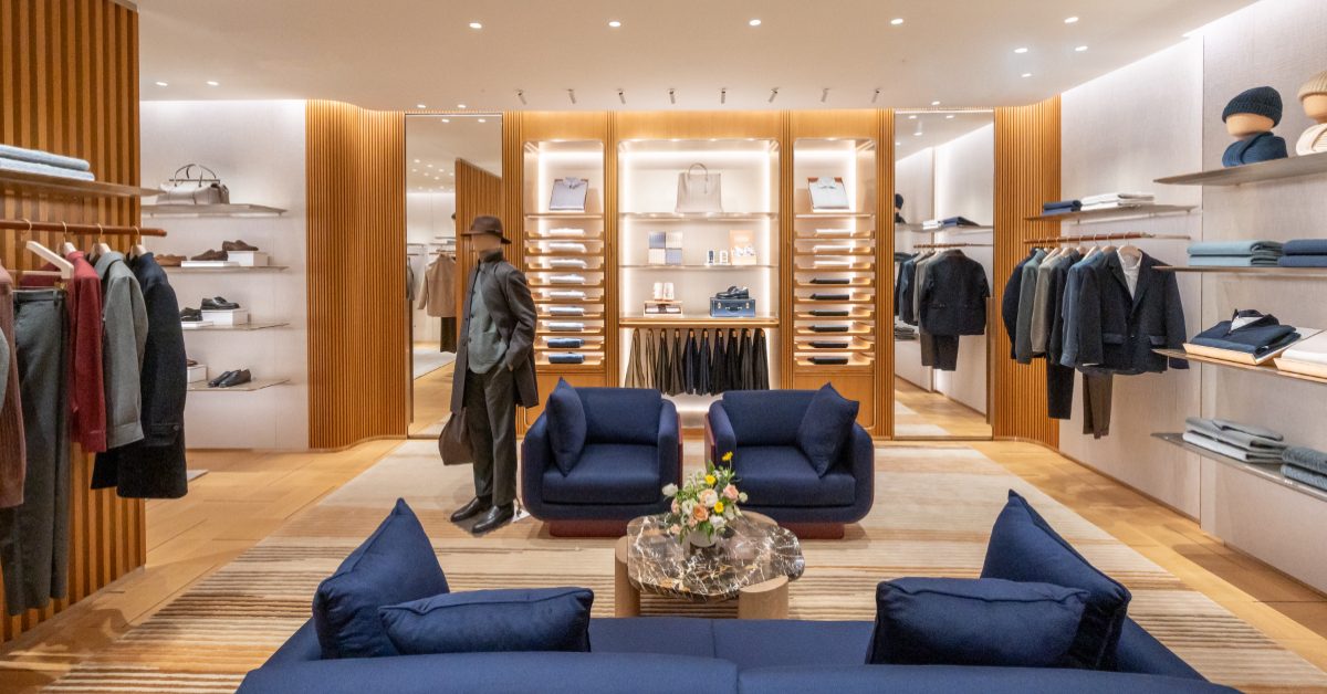 精品店全新概念與室內設計展現極簡美學,優雅精緻中透現活力氣息,完美展現 Loro Piana 的獨特風格。店內的裝潢以天然材質為主,配以散發暖意的色調、標誌性橡木和 Carabottino 木材細節,並以經典而現代的手法重新演繹,向品牌的傳統和 Sergio Loro Piana 開創的傳奇致敬。整個空間完美結合脫俗風格與舒適體驗,體現如家親切的溫馨氣氛。由 Loro Piana Interiors 設計、質感豐富細緻的飾面、絲質地毯、酒椰葉及絲質壁紙,無不展現品牌對細膩觸感的極致追求。品牌的標誌性 Kummel 色、杏色及酒紅色等溫暖的大地色調,配合柔和的燈光,營造出溫馨迷人的氣氛。