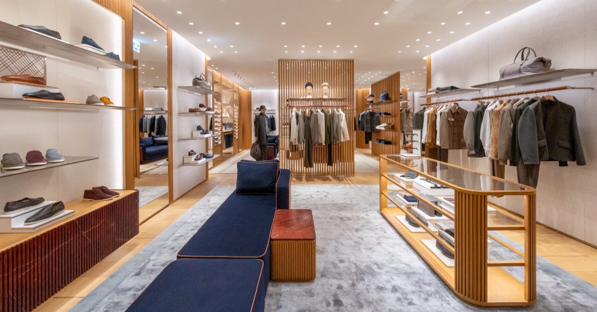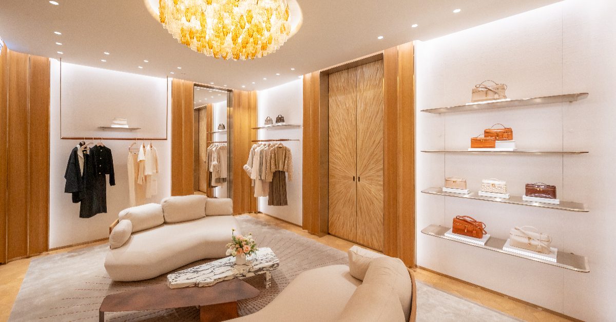 令人眼前一亮的精品店外牆,從 Loro Piana 面料的柔軟立體質感汲取靈感,手工製作的釉面陶瓷呈現獨特Kummel色調的各種深淺變化,而匠心獨運的建築元素、一絲不苟的細節及各種奢華物料均令外牆分外奪目懾人,同時彰顯品牌對精湛工藝的不懈追求。精品店以寬敞的單層空間呈現,為顧客帶來順暢的購物體驗。入口區域展示琳琅滿目的配飾,其中,中間的牆壁更展示以手袋為主的各類皮具,並延伸至男女鞋履及成衣區。店內透過別出心裁的佈局,引領顧客從入口沿途探索至最深入的位置,設有私人空間以供預約專屬體驗。