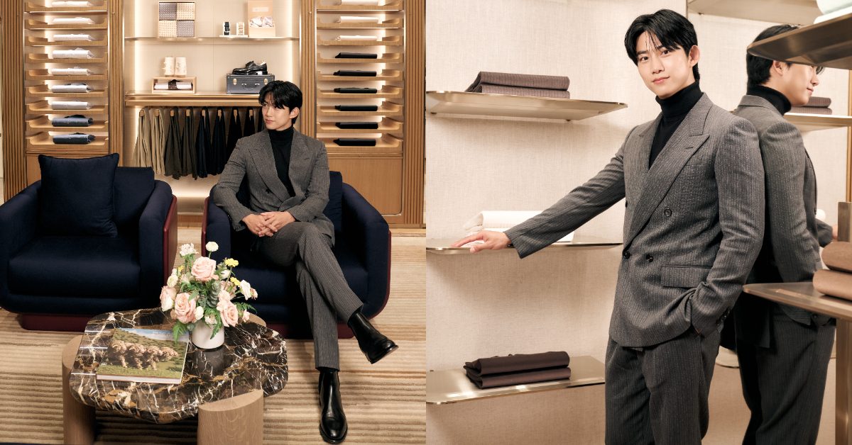 玉澤演身著 Loro Piana羊毛西裝套裝,以雙排扣設計結合劍領剪裁,內搭小山羊絨高領毛衣,勾勒出俐落輪廓,搭配牛津皮靴,展現紳士的從容氣度。細節間流露低調而精緻的質感,完美體現 Loro Piana 對低調奢華與極致優雅的不懈追求。