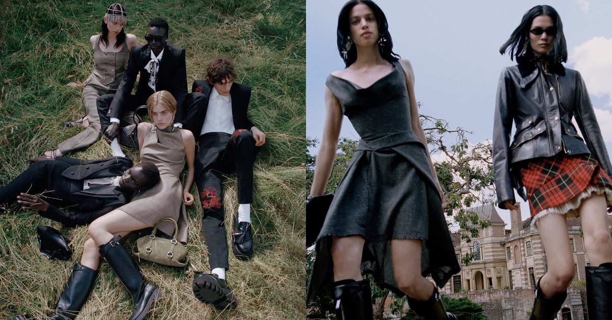 Dafydd Jones 攝影作品《The Last Hurrah》中的派對場景在此重現。反叛與浪漫主義的張力暗流湧動。水晶吊燈碎片刺繡點綴於黑色絲綢之上,西裝廓形利落而修身。拋光金屬T-Bar飾件與黑色精裁禮服形成風格碰撞,承襲薩維爾街的精準剪裁工藝。