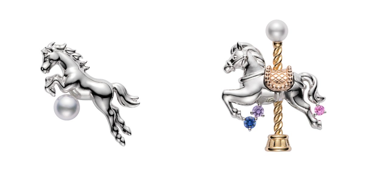 以輕快躍動的白馬為靈感,生動勾勒駿馬昂揚之姿,並以 Akoya 珍珠點綴,用其溫潤光澤為新年添上幸運寓意,象徵告別往日、轉身向前,以嶄新姿態迎接全新一年;另一款則以旋轉木馬為靈感,並點綴上珍珠與三色藍寶石相互輝映,寓意每一次轉動皆是邁向美好的步伐,為2026年開啟璀璨的篇章。