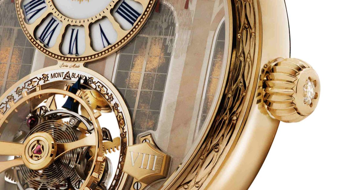 為紀念凡爾賽宮的華麗輝煌,以及這個歷史上傳奇的舞會,MONTBLANC推出全球限量8只的明星傳承系列懸浮外置陀飛輪腕錶,每個細節都呈現了凡爾賽宮的建築美學,錶盤更重現了「紫杉樹舞會」當晚的鏡廳盛況。華美的設計融合了傳統琺瑯工藝、微繪技術,以及大理石與橡木鑲嵌細工。此外,腕錶也結合了同樣精湛的現代科技,運用了精密的3D建模,在藍寶石鏡面與黃銅上,進行雷射蝕刻。