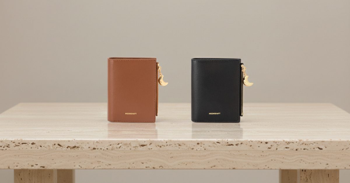 除了包款設計,MOONSHAFT亦將對時間與日常的理解延伸至皮革配件之中。NEBULA TRIFOLD錢包採用全粒面頭層粒紋小牛皮革製作,並搭配標誌性的NEBULA 金屬按扣,在小巧比例中保有清晰分層與實用收納機能,適合每日隨身使用。俐落的三折結構設計,讓錢包在兼顧容量的同時,仍維持輕巧不厚重的手感。CRESCENT BIFOLD WALLET 則延續 MOONSHAFT 對月光意象的詮釋,以弦月作為設計靈感,選用光滑納帕小牛皮革,呈現溫潤而內斂的質感。迷你金色弦月拉鍊頭成為細節亮點,在簡約外型中增添低調識別度。對開式結構搭配完整收納配置,使其成為兼顧實用性與設計感的經典皮夾選擇。於新年與情人節的節點,這兩款錢包不僅是實用配件,也象徵一份能長久陪伴、隨時間累積情感的心意。
