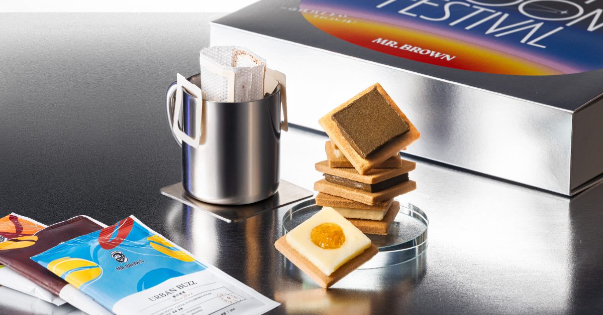 今年的中秋節,伯朗咖啡館為節慶設計了一份別出心裁的「登月」禮盒,首度與歐美系甜點品牌 Miss V Bakery 攜手,推出限量的《伯朗中秋濾掛禮盒組》,在咖啡的香醇與餅乾的細膩之間,找到了一種既浪漫又帶點俏皮的節奏。