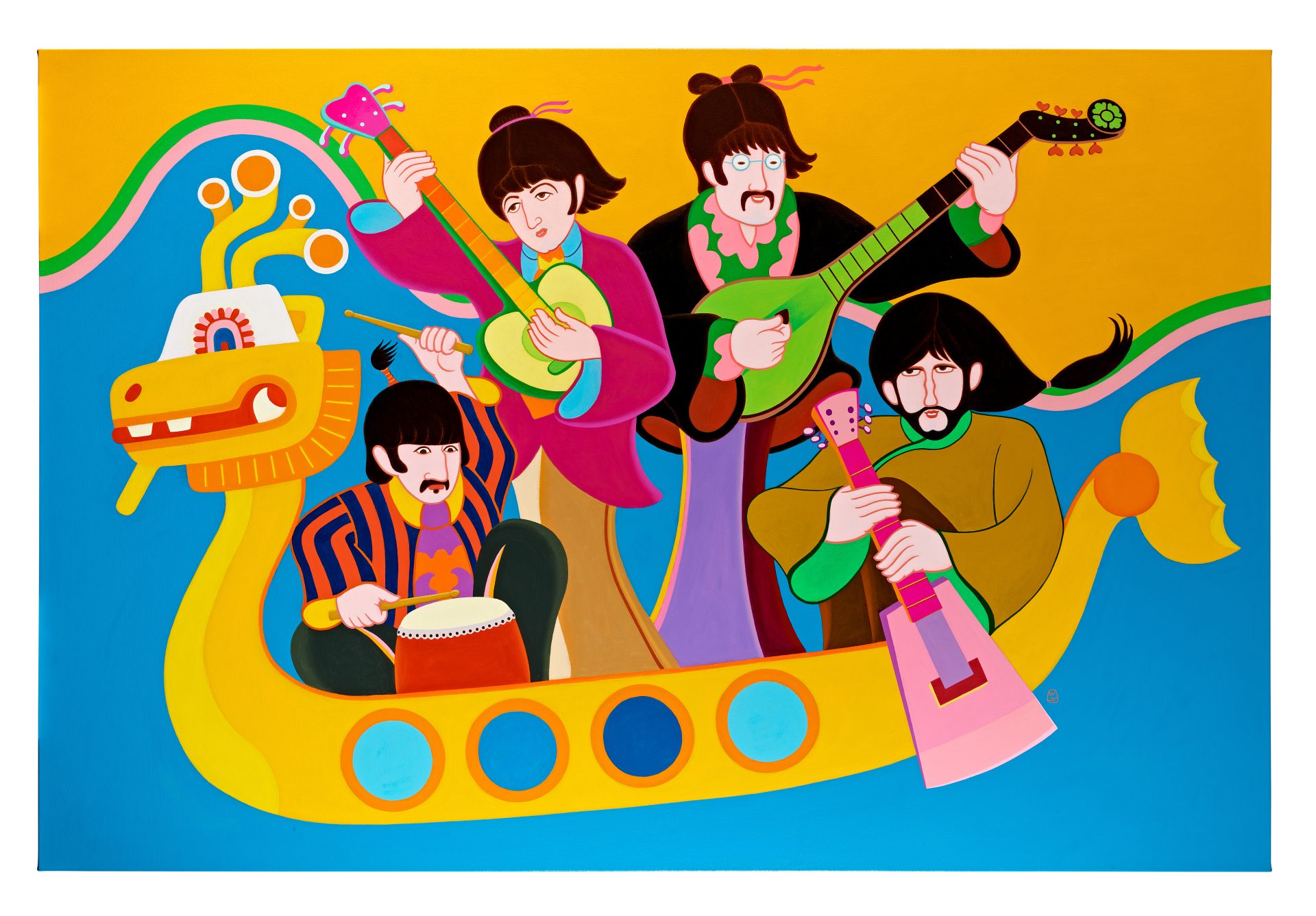 「英國樂隊披頭四於 1970 年解散,同年我在香港出生。我兒童至少年時代,披頭四的歌曲仍然相當流行。我讀大學時終於在電影院看過披頭四的黄色潛艇動畫,被其音樂與畫面深深震撼。1990 年代雷射唱片普及後,我陸陸續續聽遍披頭四所有出版過的大碟。隨着年紀漸長,對披頭四的青春與創意越加沉迷。後來我從傳媒相片得知,披頭四於 1964 年曾到香港演唱。1977年,約翰藍儂帶他兩歲的小兒子來香港旅遊,到過港島大坑虎豹別墅參觀,在中國民間仙佛彩塑前留影。今次我希望把披頭四的姿態,與中國民間風俗結合起來,參與邦瀚斯這場帶有奇幻品味的動物主題藝術展。」 —石家豪