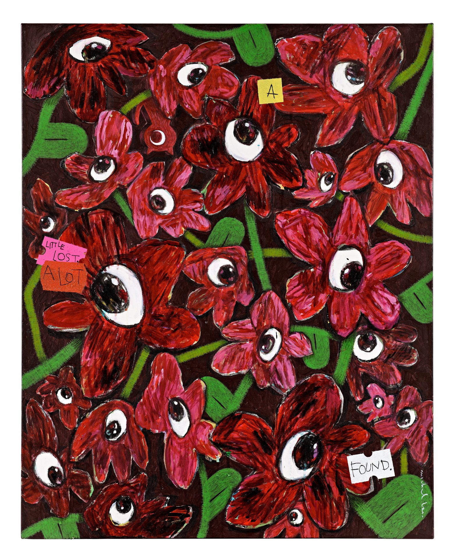 「在這個虛幻與迷失的時代,人與動物的關係遠已超越生存與實體的牽動,而是延伸至種種難以言喻的情緒價值及精神寄托,人與動物的角色關係更是變得難言主次。我於畫作中以動物作第一身的描述,亦以動物比喻人類在現代生活中的角色,敘述著在這人生的路程上,我們如何在惘撞的途中跌跌碰碰的找到自己,是成長的經歷,亦像動物在自然中慢慢找到生存的路徑一樣。畫作以其標誌性帶着大眼睛的不同花朵寓意在這花花世界路途上的不同交集,亦是我正面的期許,請大家記得開心、蓬勃成長,燦爛開花。」—Michael Lau