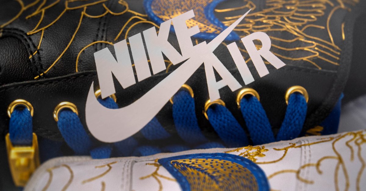 同步推出金繡典藏版黃金鞋則以可穿著為前提,保留日常使用機能,關鍵細節運用黃金工藝,包括 Nike 勾勾、鞋側 Air 標誌、鞋帶環以及鞋帶扣等部位,讓黃金成為點睛般的視覺語彙,並開放客製訂製,提供藏家在藝術價值與實穿性之間的全新選擇。