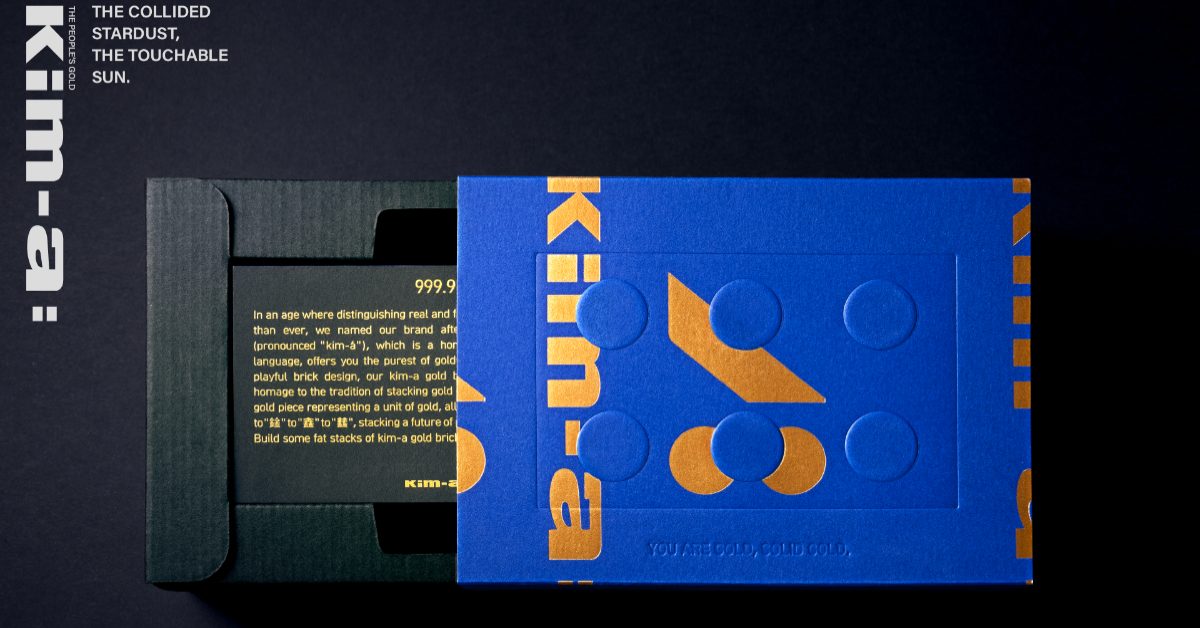 來自台灣的潮流黃金品牌 kim-a:,於 2024 年正式成立。品牌承襲家族四十年的金工技藝,將純度 999.9 的真金轉化為可堆疊、可玩賞的創意積木,融合當代藝術與設計語彙,兼具投資價值與收藏趣味,開創新世代的「黃金新語言」。品牌名「kim-a(金仔)」取自台語,呼應「chin-ê(真的)」之音,象徵在瞬息萬變的世界中對真實與誠信的堅持。秉持 In Gold We Trust 的精神,kim-a: 以創意工藝連結傳承與未來,將黃金從傳統收藏品轉化為跨世代共感的藝術載體,開啟黃金文化全新篇章。