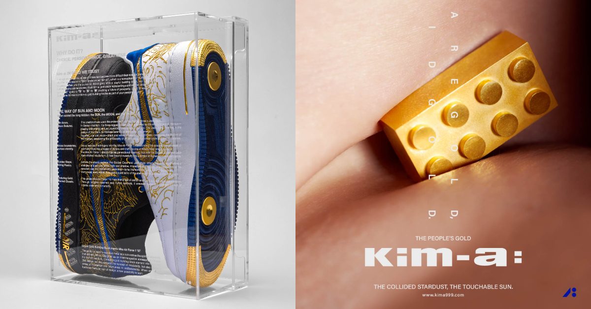 kim-a: 於 2025 年登上 ComplexCon Las Vegas 潮流藝術盛會,以「999.9 純金縫製 Nike Air Force 1」為題進行實驗性創作,在 Nike 台灣支持下完成,作品一經發表即迅速成為國際潮流與藝術收藏圈高度關注的焦點。2026 年,kim-a: 首度攜此作品展開全球巡迴,首站回到台灣,落腳台中老虎城進行期間限定展出。