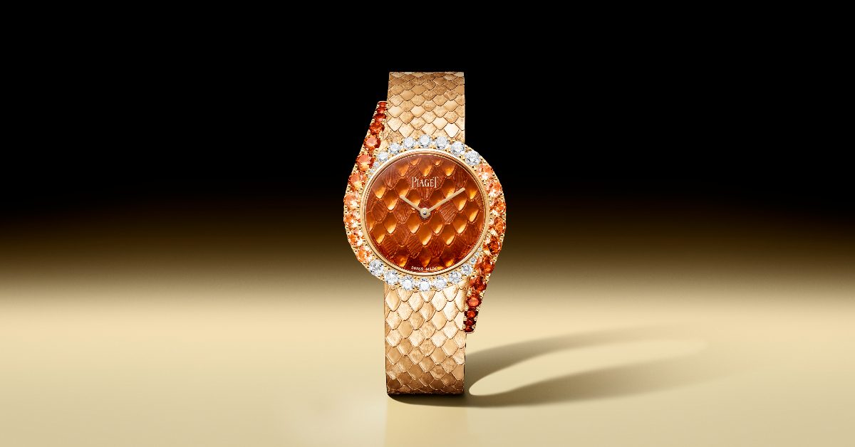 PIAGET為經典Limelight Gala注入嶄新風貌,以宮廷式雕刻飾紋結合橙色大明火琺瑯與干邑色鑽石,交織張揚與內斂兩種奢雅語彙,詮釋當代女性自信而多面的魅力姿態。