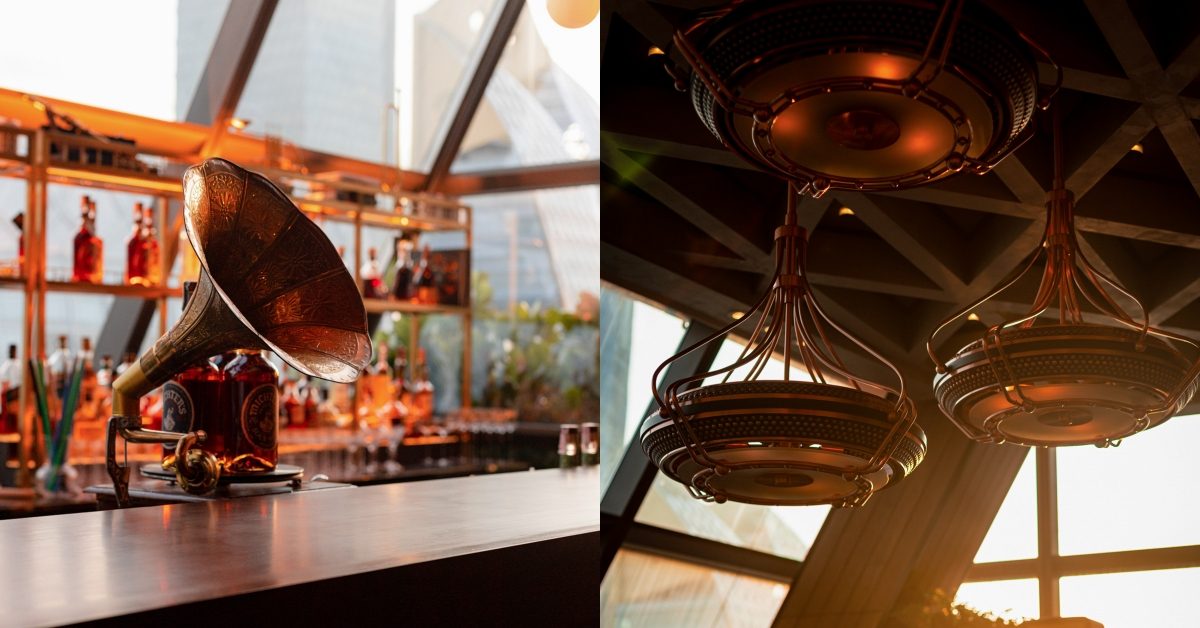 電梯門打開時,視線還來不及搜尋夜景,耳朵已經先被接住。黑膠唱片沿牆排列,唱盤緩慢轉動,空氣裡帶著一種略帶顆粒感的溫度。超過六千張收藏不是裝飾,而是日常的一部分,客人翻找專輯、放下唱針,空間的氣氛隨之微妙改變。