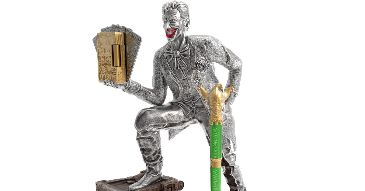 首次與 DC 漫畫經典反派合作,S.T. Dupont 即以小丑(Joker)為靈感,推出充滿戲劇張力的高訂收藏套組。銀色雕像凝結小丑狂妄的姿態,他一手高舉 Ligne 2 打火機,一手伴隨經典小丑綠的琺瑯鋼筆,筆頂設計為小丑帽造型,詭譎中帶著玩趣。